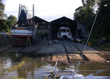 the hard’ on the Midway Marina Slipway across the Burnett River.