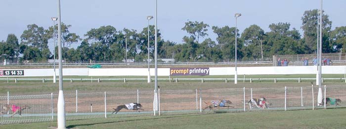burst onto the track. Some of the dogs began to run back the other way! Soon