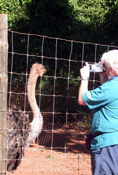 Then we went to the emus. They were strutting behind a fence. One gave me the evil eye when I tried to get close for a photo, as if to say, “Don’t mess with me!” When startled, emus can stride at speeds up to fifty miles per hour. I would not want to be chased by one. I went to the cassawaries, also behind a fence. They are pretty, but not to be messed with either.