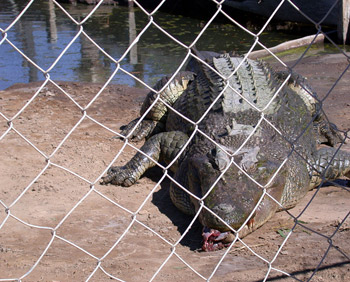 We set out from the Keppel Bay Marina on a Sunday excursion to the near-by Crocodile Farm. Our guide works on the farm, which has over 4000 crocodiles. It is the first private croc farm in Queensland, established in 1981. The farm sells croc skin for purses and boots and shoes and croc meat for food. They also breed crocs, send crocs to zoos, and keep dangerous crocs taken from rivers.