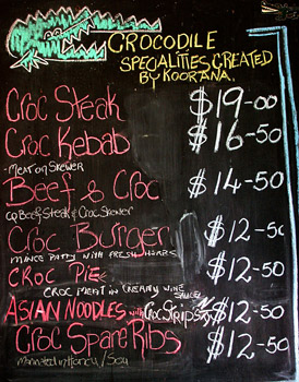 our visit to the Koorana Crocodile Farm and Restaurant. What did we eat there