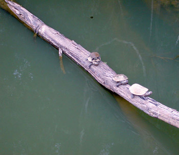 we went on the bridge crossing the river. All I saw were three turtles; I