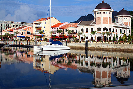 We skip the unpacking for another day. Instead, we take the bougainvillea-lined walk over to the charming Mediterranean-style restaurant row across from the marina. As night falls over the towering mountain behind the village, we order our first cold Tiger beers, along with an order of tapas. Our favorite: a small loaf of crisp, freshly baked French bread with a bowl of liver pate.