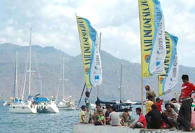 The colorful Sail Indonesia rally flags now line the shore. Most likely, they