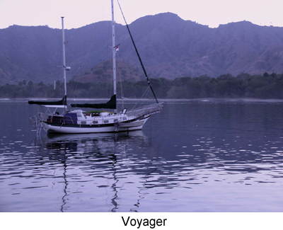 “OK,” I answered, still dazed. So he did, with the MaxSea navigation program still up at the computer. I hadn't saved our track into the difficult double-reef anchorage, and after the GPS was turned off, it wouldn't SAVE. So I'd lost my TRACK all the way back from Alor.