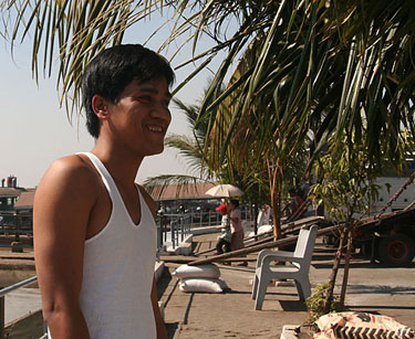 by trucks and onto the ferries. At one truck, as I photograph bags of fertilizer