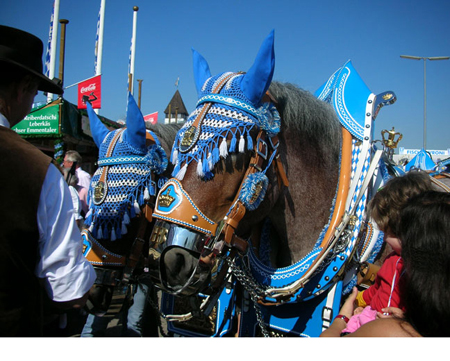 carts of the Munich breweries enter the festival-grounds. This procession