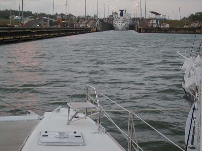 God, and we were soon motoring to the entrance to the Gatun locks, our
