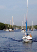 photo. From the river’s mouth, three yachts headed north for Guatemala.